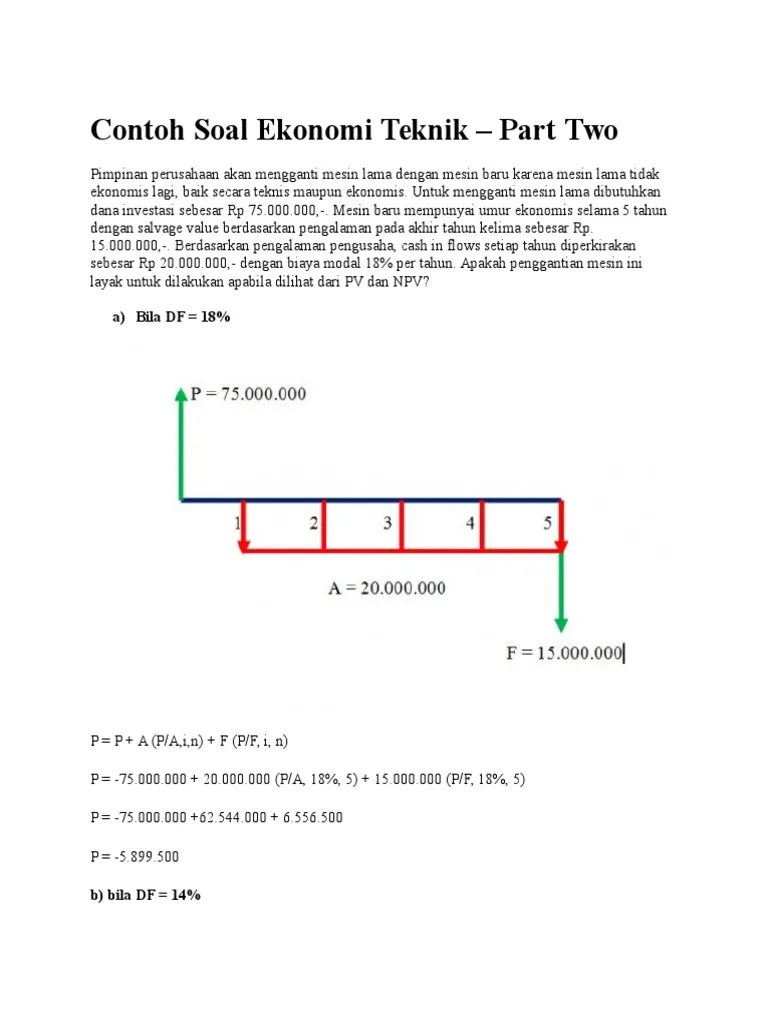 Contoh soal suku bunga dengan pengaplikasian rumus hubungan a dan p ekonomi teknik. 15 juta 3 tahun lagi. Maka pembayaran per bulan adalah: Contoh soal ekonomi teknik net present value npv dan internal rate of return irr ekonomi teknik jurusan tip ub tugas besar ekonomi teknik . Apakah anda mencari gambar tentang contoh soal ekonomi teknik?