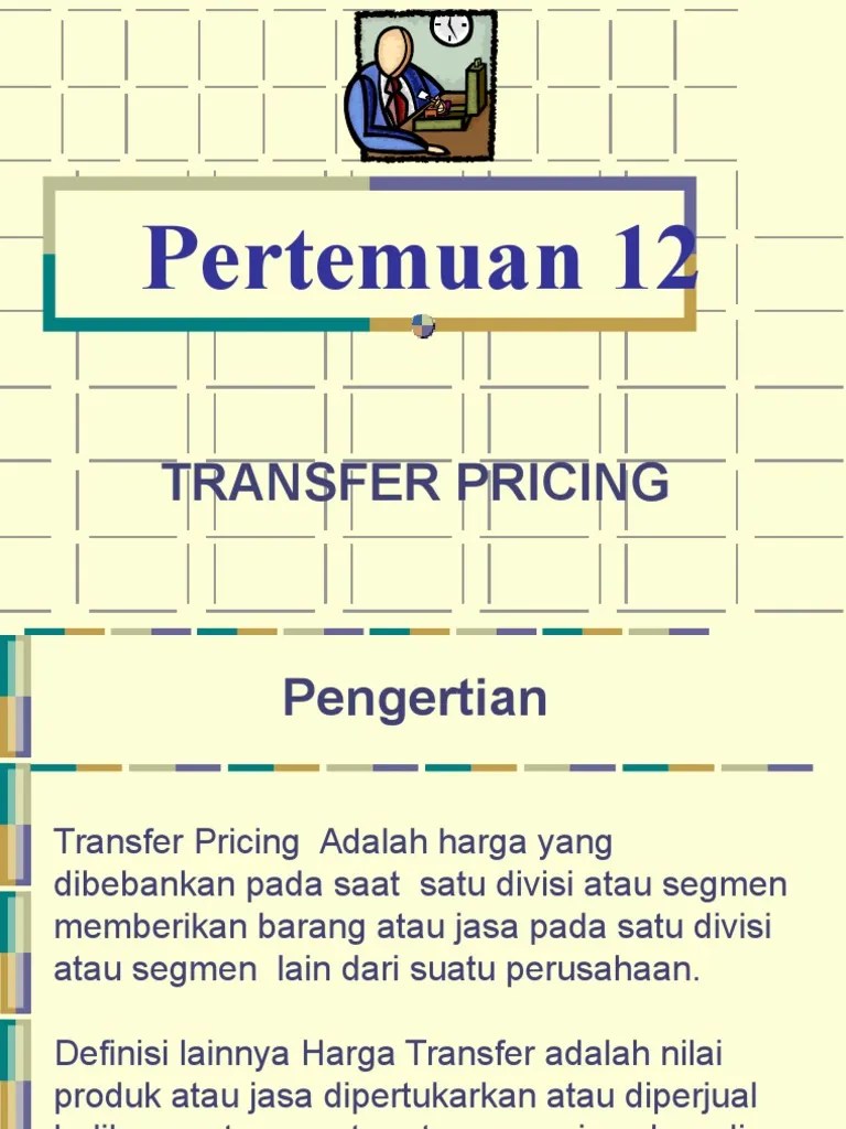 Divisi batu merupakan divisi pemasok komponen utama divisi bata . Apa yang dimaksud transfer pricing. Dosen dan mahasiswa mendiskusikan bersama tentang harga transfer. Dokumen dan/atau informasi tambahan yang wajib disimpan oleh wajib pajak yang. Senilai hatga pasar dkurangi potongan= rp304.000 per unit jawaban soal 2 1.